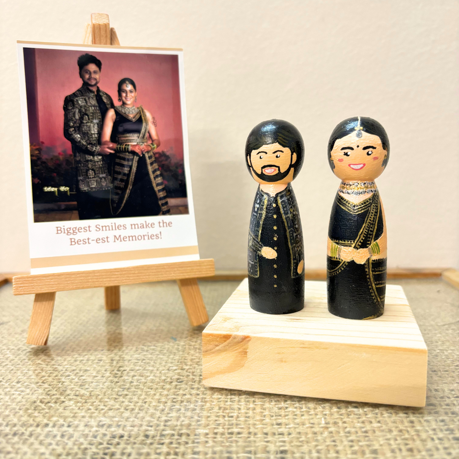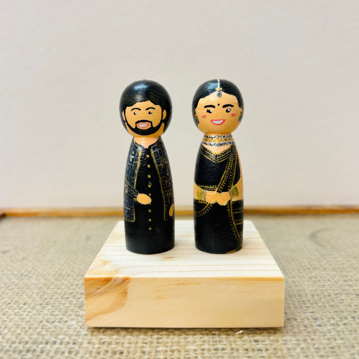 Description: Aakruti peg dolls make for an extraordinary gift, perfect for any occasion. Celebrate weddings, anniversaries, birthdays, or any special milestone with a personalized touch that speaks volumes. These dolls also serve as a heartfelt memento for housewarmings, birthday celebration, personalised return gifts or as unique wedding decor elements.