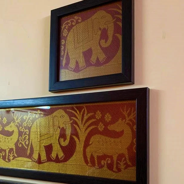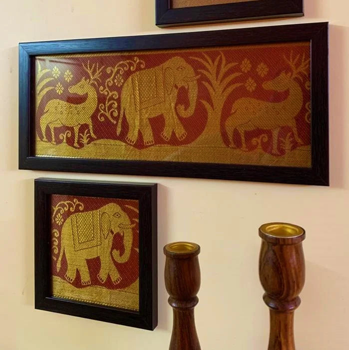 Description: Playing on a traditional note, this elephant Story brings out the best version of culture and tradition. The intricate golden work on a red base is a typical Indian aesthetic and would complement any Indian household. A mix of square and rectangle, elephant and deer, red and gold keeps it rich yet playful!