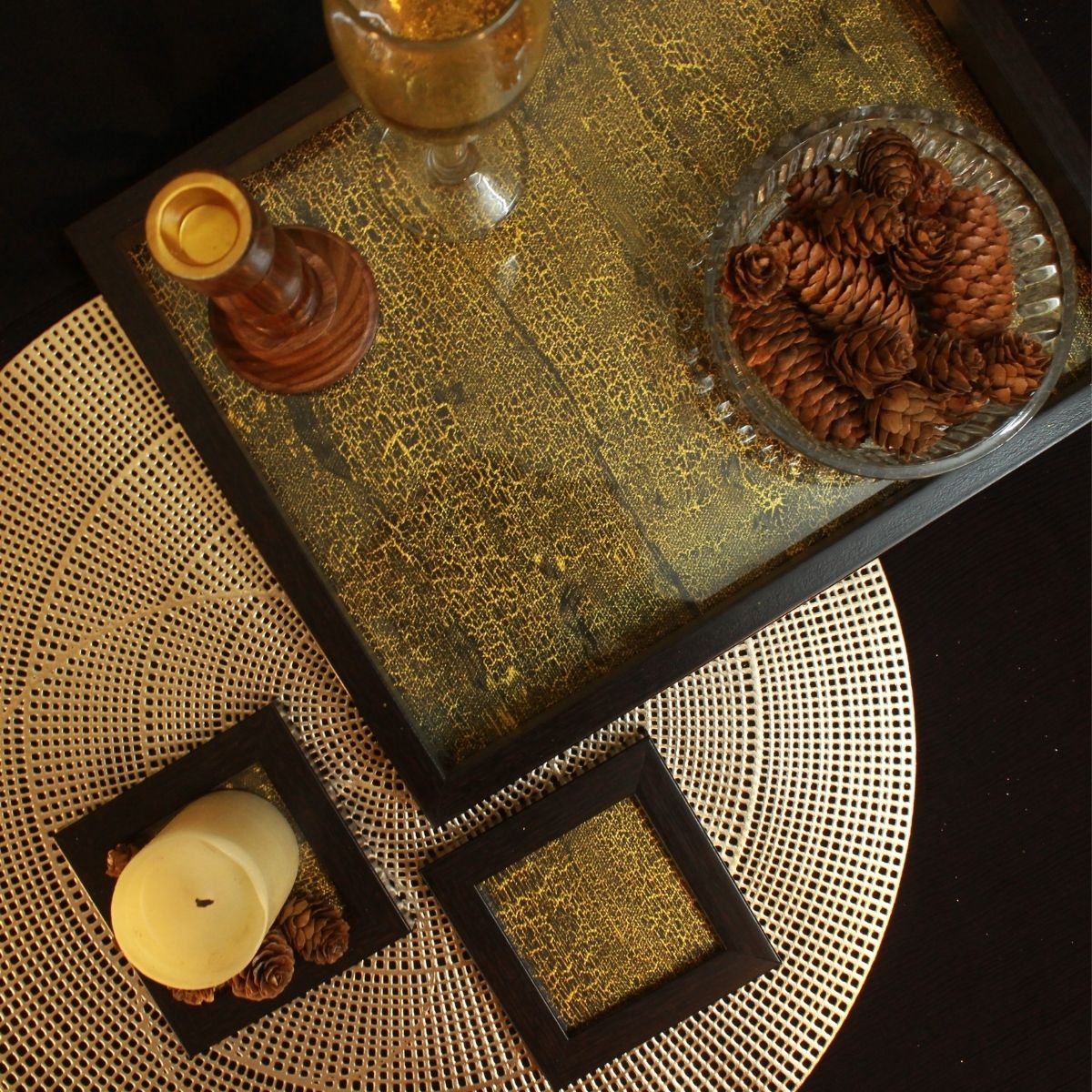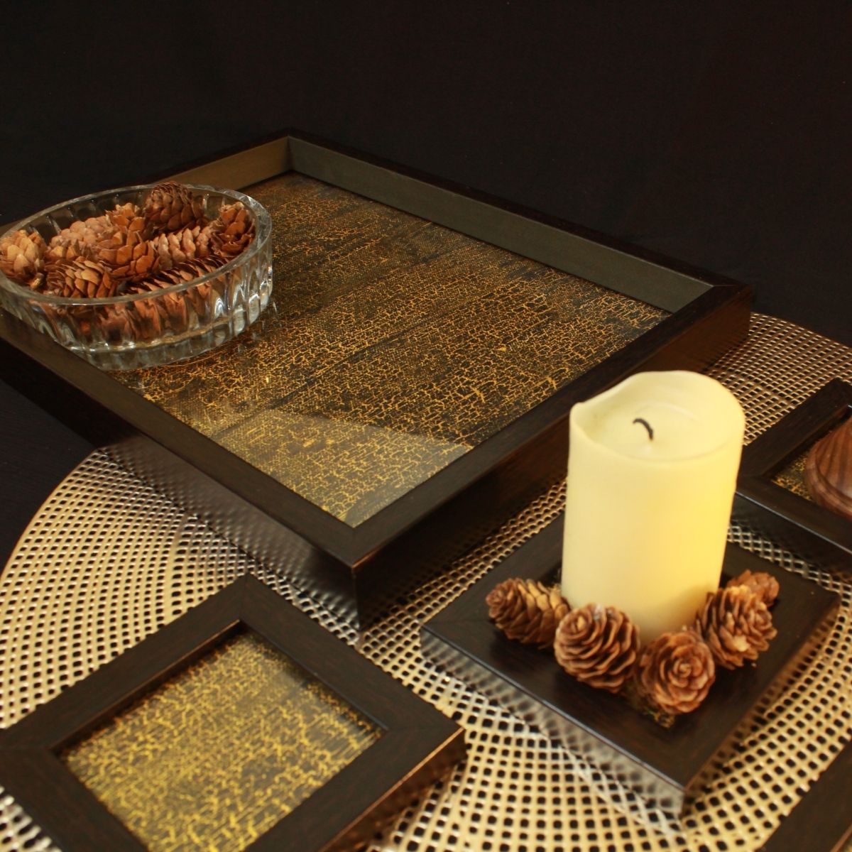 Golden Crackle Rectangle Tray