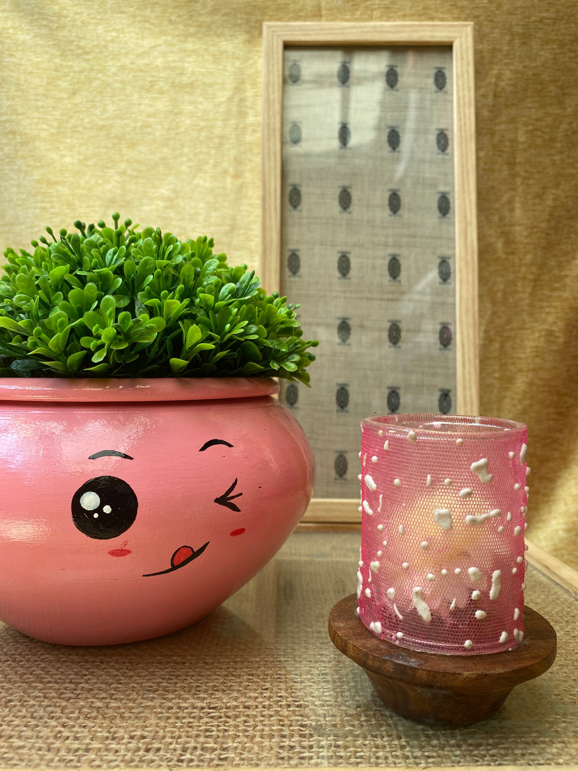 Description: Our hand painted Nakhre Planters are everyone's favourite. The most adorable planter you will ever find. Our Pink Wink Planter is sure gonna turn heads around if you take her home. This medium sized planter is ideal to use indoor as it does not have a hole at the bottom but at the same time it makes it easy to place in any corner and on any surface without worrying about spilling or leakage! But no hole won't damage the plant? No, terracotta has ability to absorb water, you can feel the planter turn cold when you add water in it, hence the plant can be all happy and green even with no hole at the bottom.